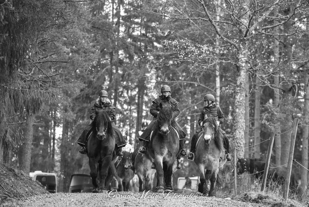 Vi är ute ca 4–5 timmar, rider i alla gångarter, stannar för en längre paus då vi grillar korv, fikar och värmer oss vid elden