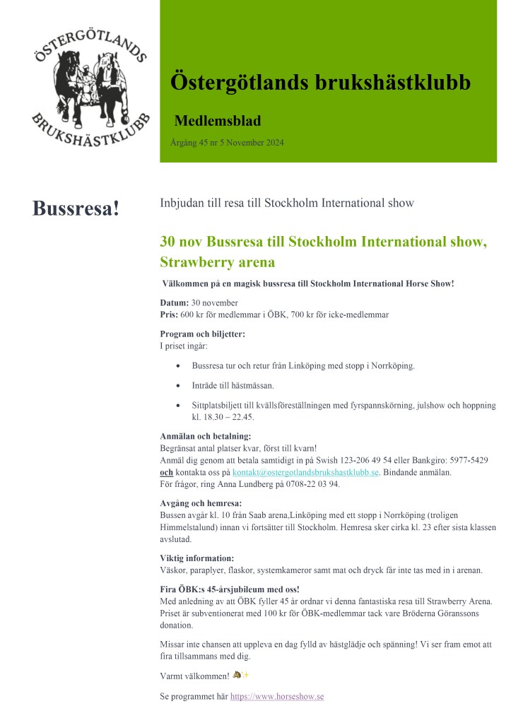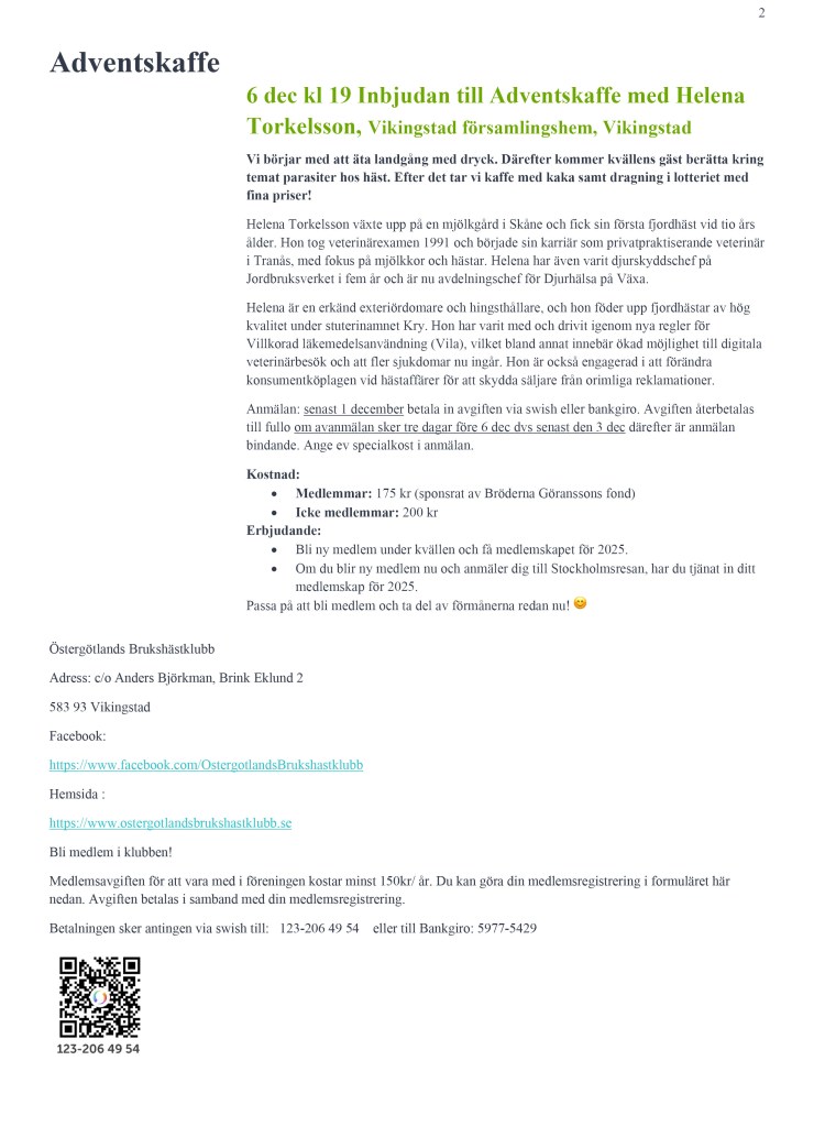 Inbjudan från extern arrangör Föreningen Nordsvenska Hästen i Östergötland17 november, 202417 november, 2024Okategoriserade Inläggsnavigering FöregåendeNästa Dela det här: Klicka för att dela på X (Öppnas i ett nytt fönster) X Klicka för att dela på Facebook (Öppnas i ett nytt fönster) Facebook Gilla Laddar in …